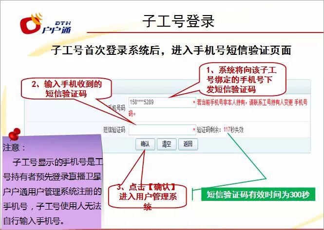 昨天,卫星直播管理中心和户户通行业网站公布了新版户户通用户管理系统的操作手册,针对部分专营点还是有些疑惑,我们在这里以时间为主线,把复杂的介绍变的简单,告诉大家到底是怎么回事。 时间任务:2017年12月27日——2018年1月3日 一、母工号持有者需要做什么? 该期间,母工号持有人,需登录户户通用户管理系统,修改你工号所属子工号的手机号码。 二、子工号使用者需要做什么? 该期间,子工号使用者,需要这几天抓紧联系母工号持有人,让母工号持有人在用户管理系统修改填写你子工号的手机号码。如果在这期间没有修改手机号码,1月4日后,你将不能登录该子工号。 时间任务:2017年1月4日 一、母工号持有者需要做什么? 1月4日8点开始,首次登录母工号时,用户管理系统会首先弹出一个画面,您只需输入自己的手机号码即可,获取短信验证后,进入系统。该工号就与该手机号码绑定成功。 注意:这里说的手机号码与原来申请工号的手机号码没有关联,您可填写您正在使用的任何一个手机号码即可。 二、子工号使用者需要做什么? 1月4日8点后,首次登陆子工号,用户管理系统也会弹出一个画面,手机号码已经被母工号提前设定,子工号无权修改,只能点击发送验证码,子工号使用人输入手机接收到的验证码后,正常登录系统。 您拥有的是母工号还是子工号,按照以上时间对号入座即可。 —— 北京户户通工作室 2017-12-27 |